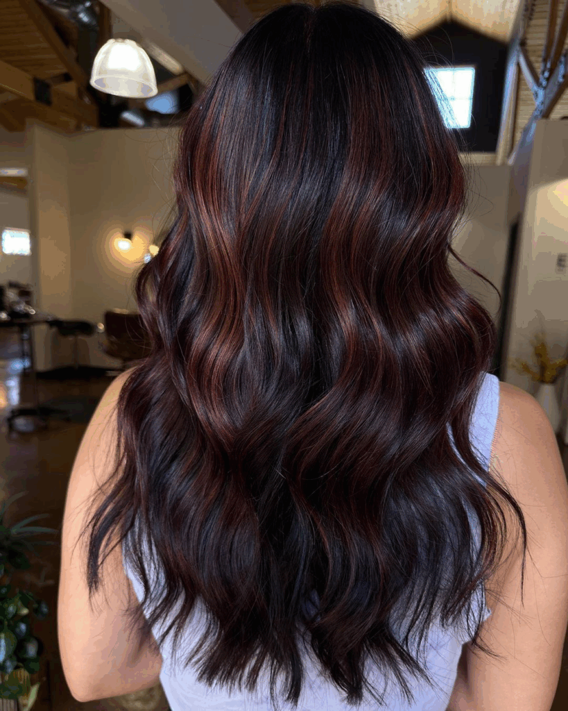 This year’s favorites include copper and auburn reds, rich mocha brunettes, honey and champagne blondes, and dimensional blends like tortoiseshell. The common theme: depth, shine, and dimension.