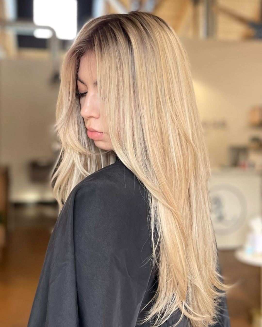 Darker or thicker hair often requires more lift to achieve bright, buttery, high-impact tones.